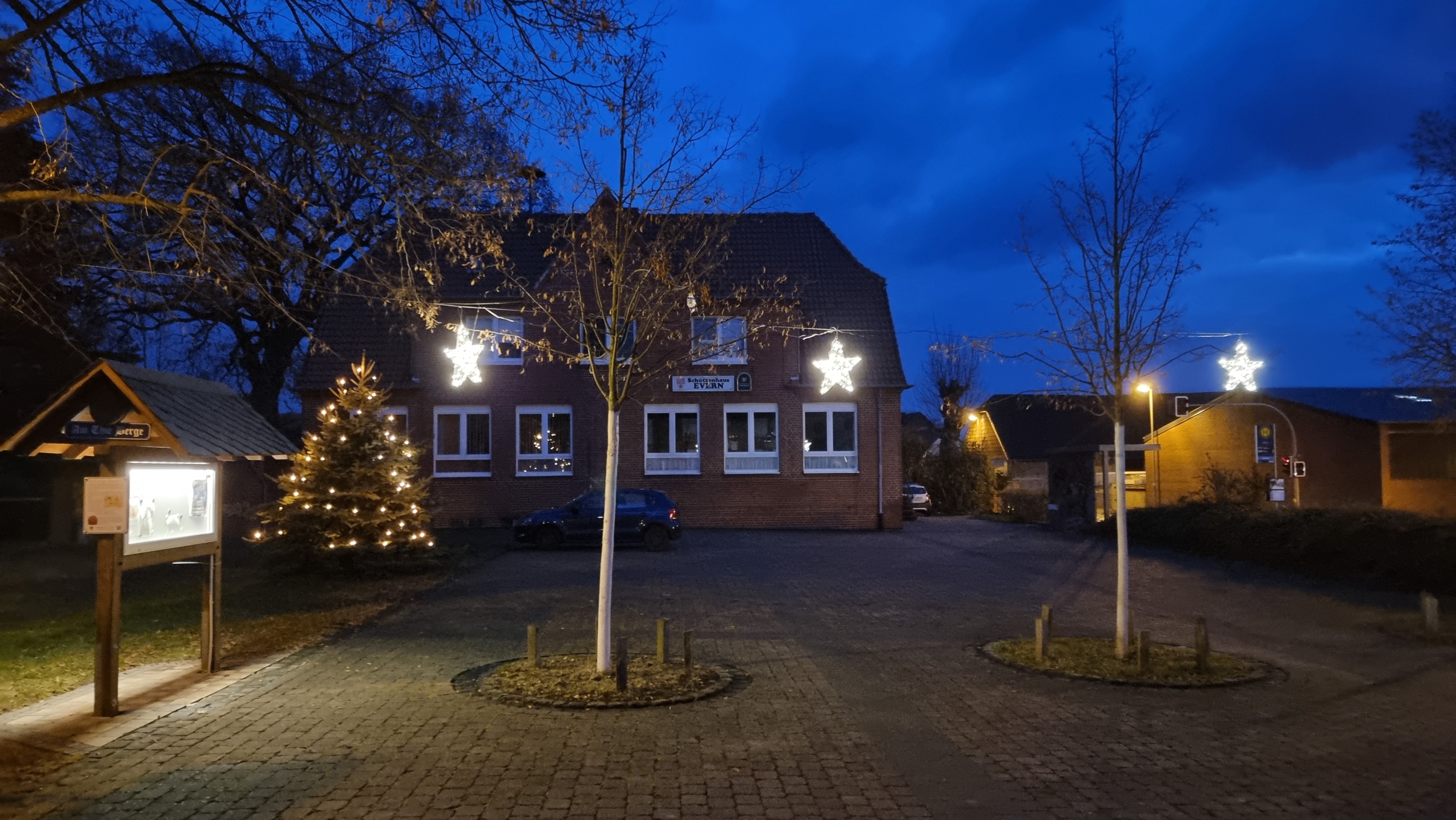 Um wenigstens bei einem abendlichen Spaziergang etwas weihnachtliche Atmosphäre zu erleben, hat der Dorfgemeinschaftsverein Evern auf dem Dorfplatz wieder einen Tannenbaum aufgestellt und mit Lichtern geschmückt. Zudem wurden einige Lichtsterne installiert.